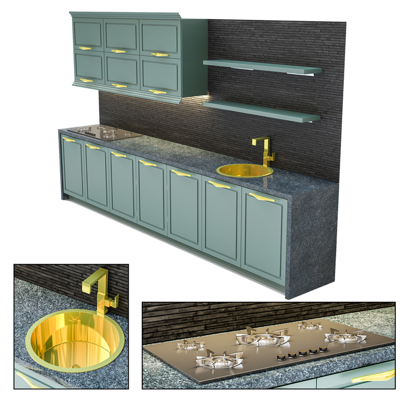 厨房橱柜灶具和水池整体套装素材之家精选3D模型
