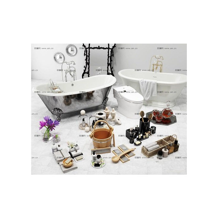 现代浴缸马桶毛巾香皂洗漱用品组合素材之家精选3D模型