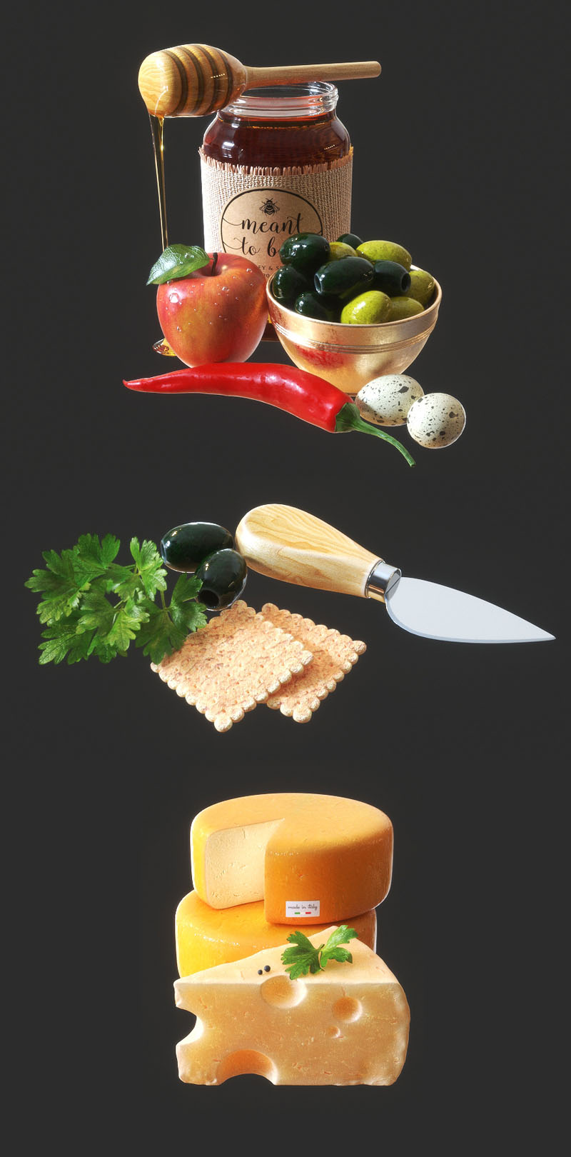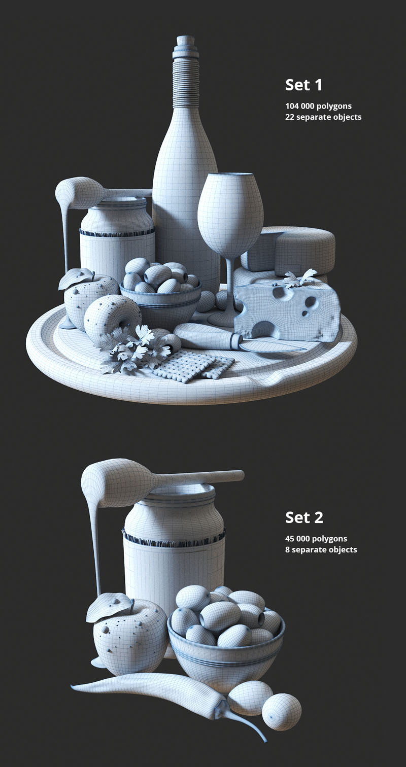 红酒奶酪和苹果等食物素材之家精选3D模型