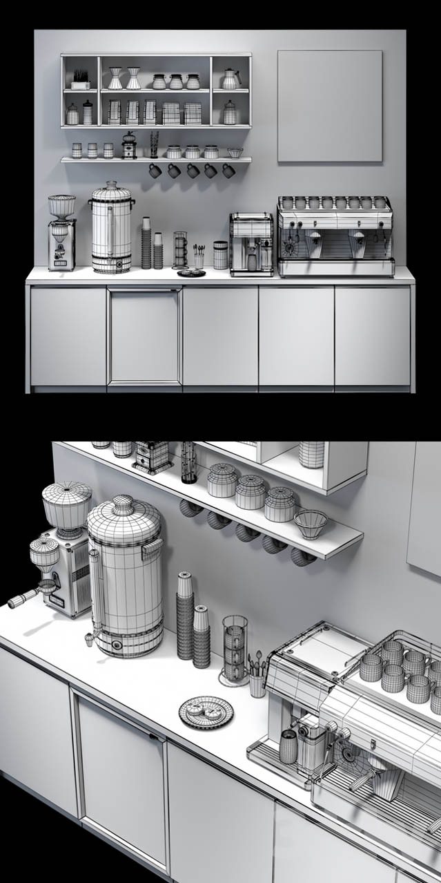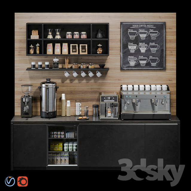 咖啡机咖啡研磨机和水壶封口机组合素材之家精选3D模型