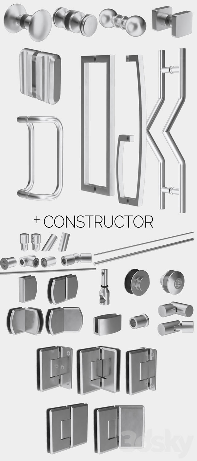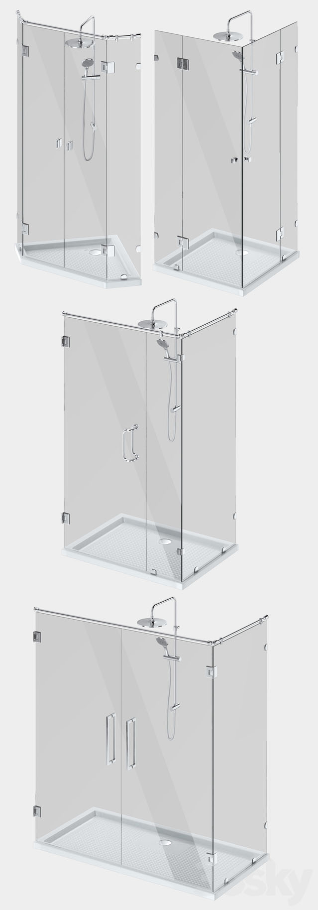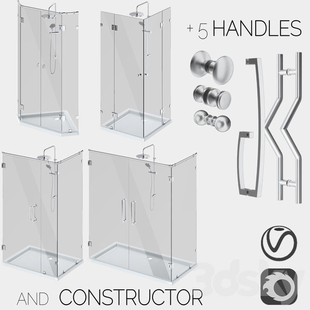 倾斜式玻璃淋浴房和淋浴房拉手把手套件素材之家精选3D模型