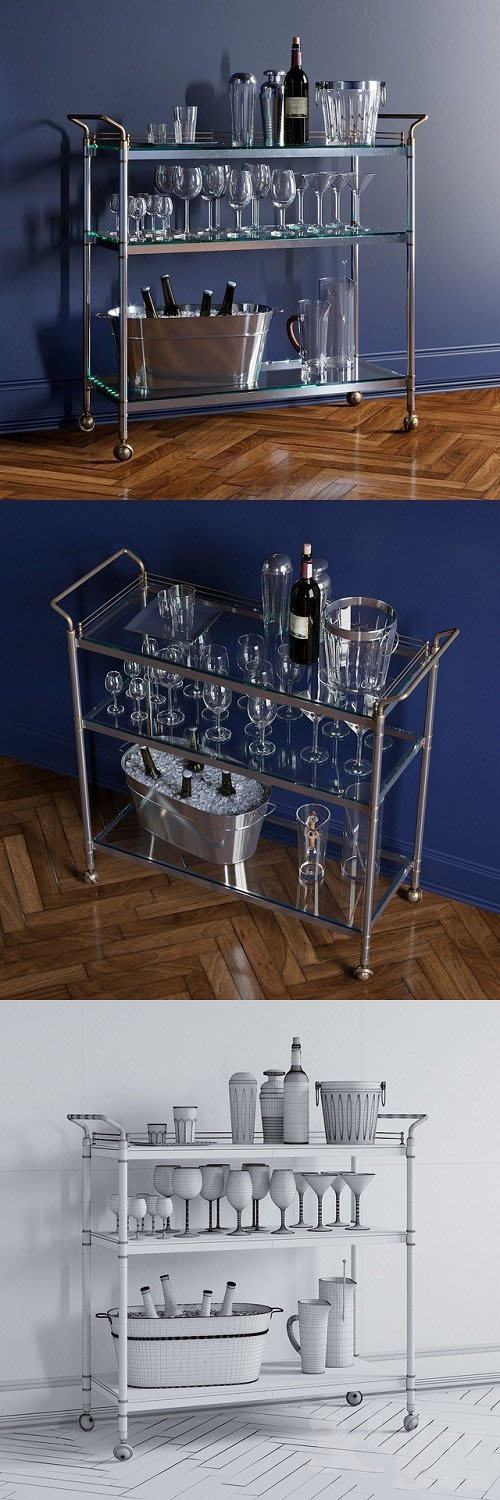 三层酒吧酒水移动小推车素材之家精选3D模型