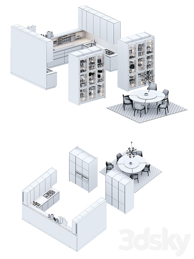 欧式厨房橱柜厨具和餐桌餐椅素材之家精选3D模型