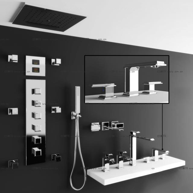 现代不锈钢水龙头淋浴组合素材之家精选3D模型