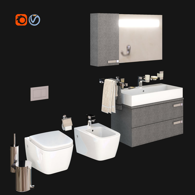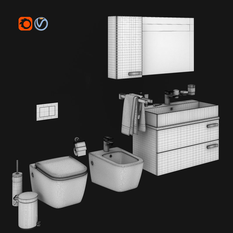 马桶 脸盆 毛巾架 牙刷架 垃圾桶等卫浴用具素材之家精选3D模型