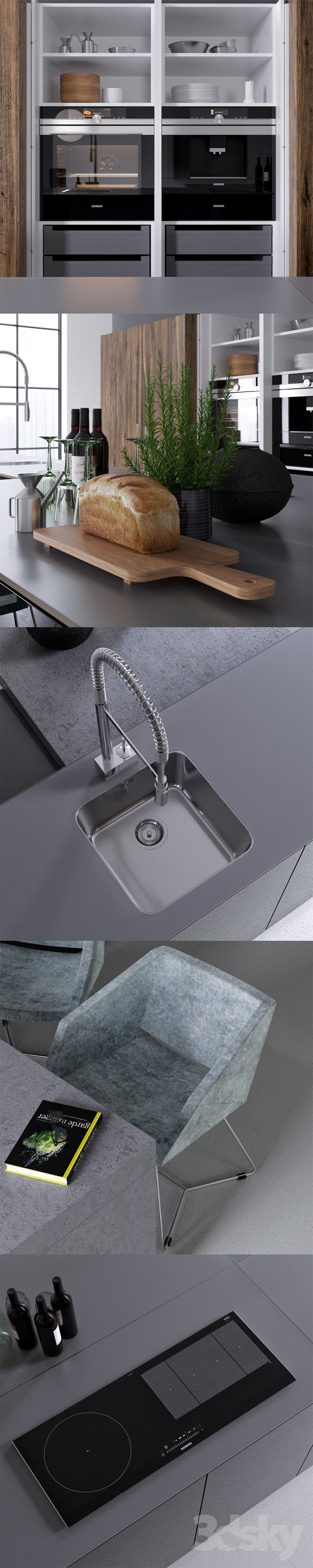 欧式漂亮的厨房及相关的厨具用品素材之家精选3D模型