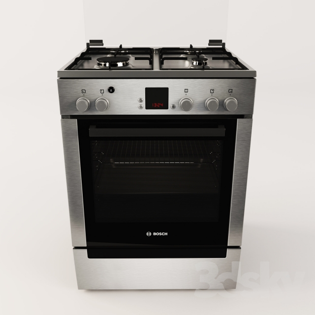 Gas stove R. Bosch HGG 245 255 Dimensions (HxWxD) (cm) 85x60x60, stainless steel, 4 burners, oven 63l, textures available.