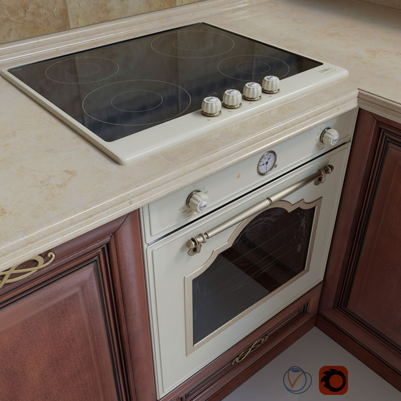厨房Klio。 在matlibs文件夹中:Materials Corona and Vray Efforts模型:Smeg SF750PO烤箱灶具Smeg PI764PO水槽。