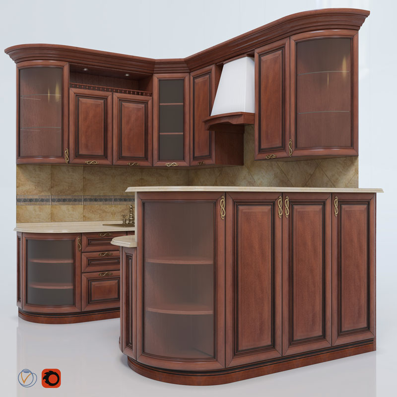 厨房实木橱柜烤箱灶具水槽素材之家精选3D模型