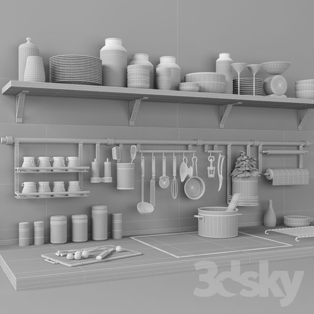 厨房餐具厨房用具勺子调味罐刀具砧板素材之家精选3D模型
