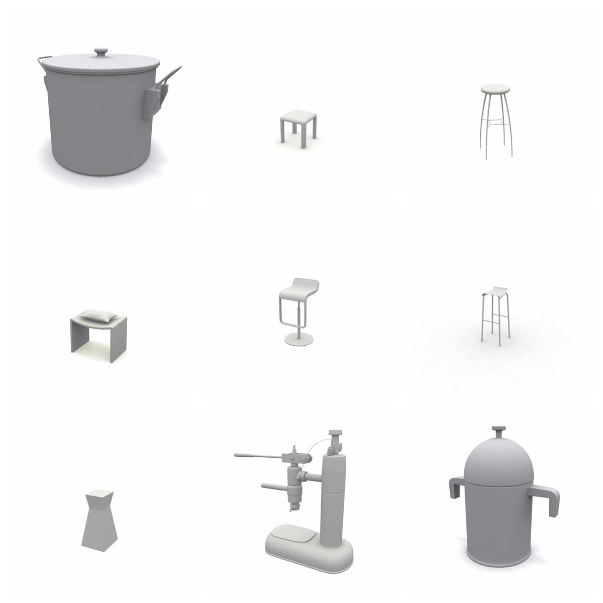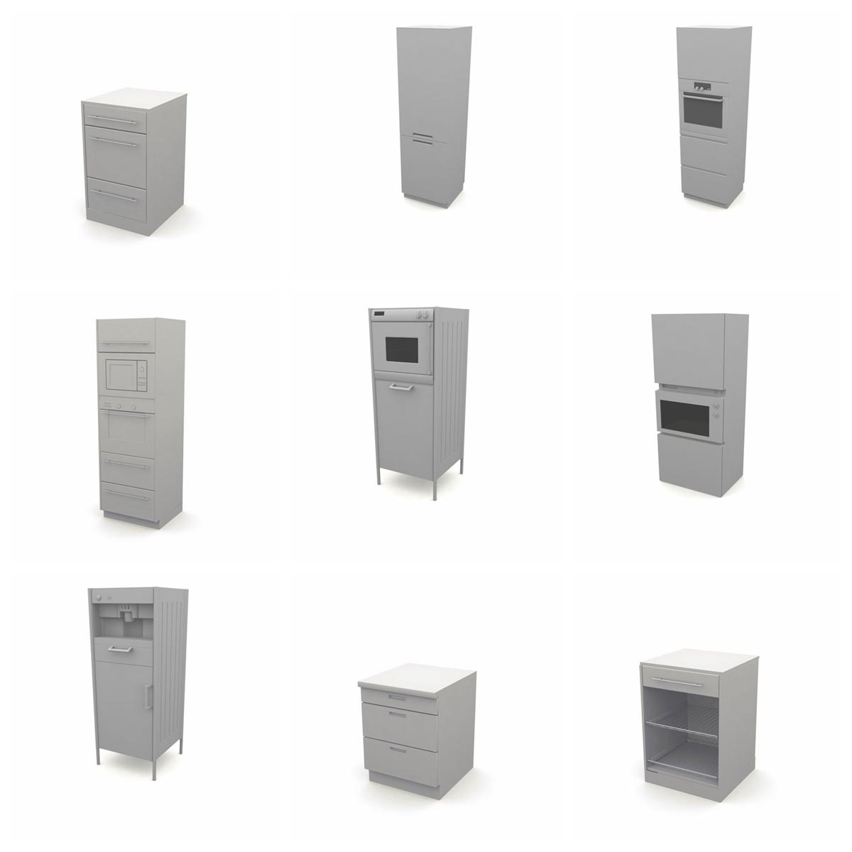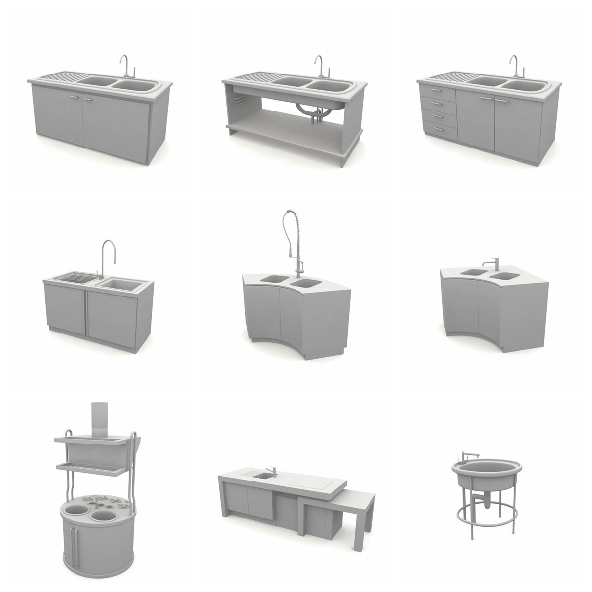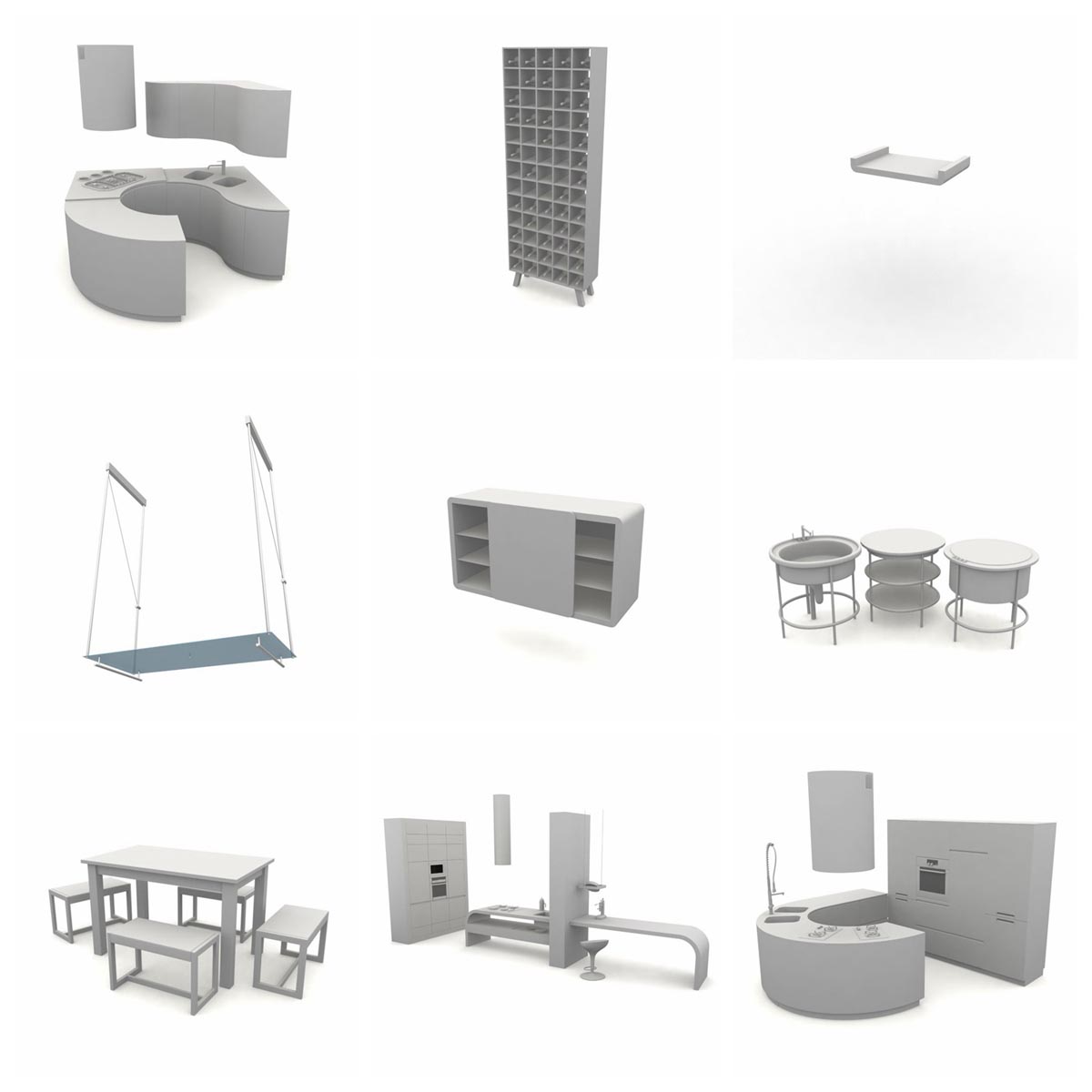 这个系列有134种型号的炊具,抽油烟机,冰箱,炉灶,水槽,椅子,盘子,微波炉。不包括场景。