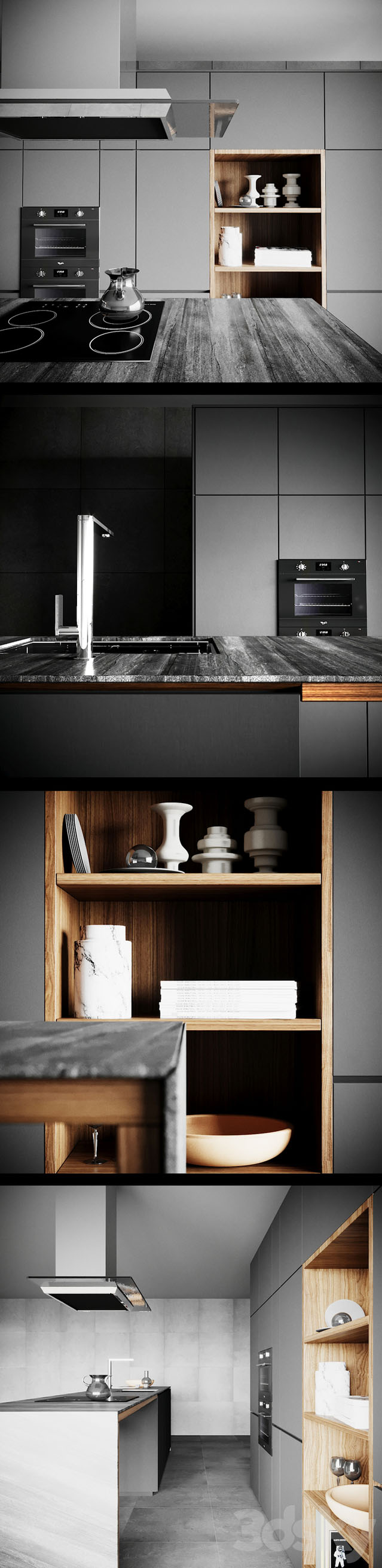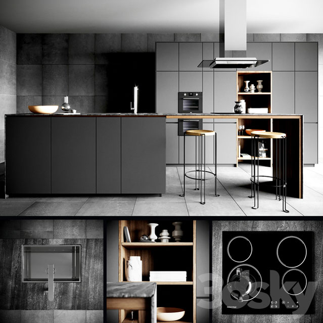 意大利 Valcucine 工厂的现代风格厨房组合示例。 它由实木和金属制成。 各种修改都是可能的。