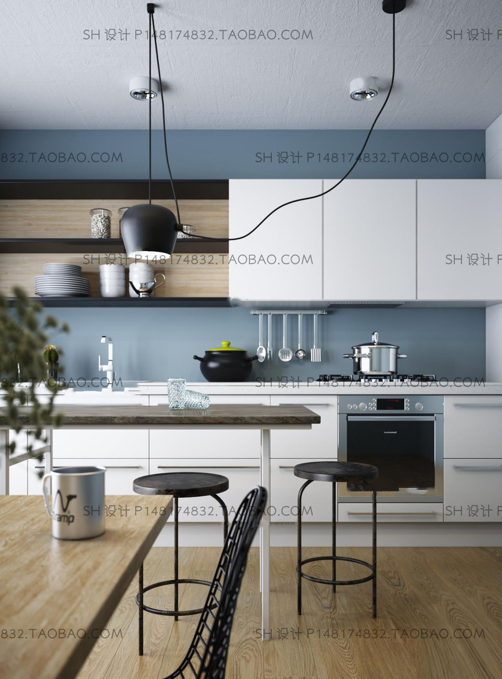 北欧美式厨房橱柜厨具3d模型