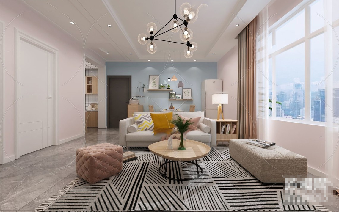 北欧客厅餐厅和厨房3d模型