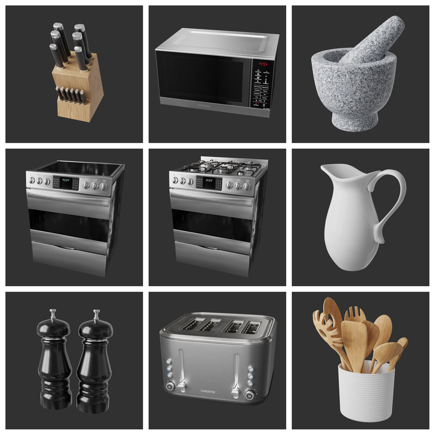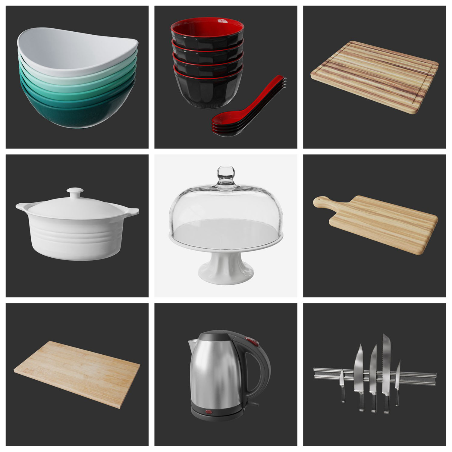 20款碗勺锅具热水壶砧板刀具微波炉灶具等素材之家精选3D模型