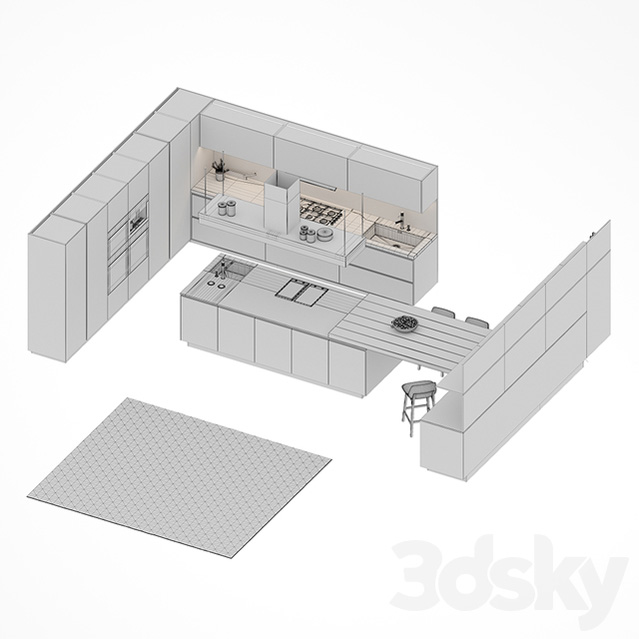 现代整体厨房橱柜套装素材之家精选3D模型(vray GGX, corona PBR)
