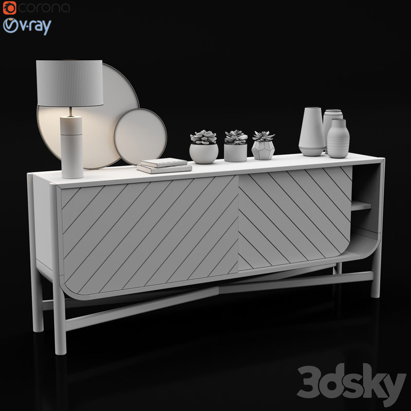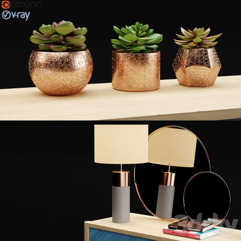 餐边柜和台灯多肉植物装饰品素材之家精选3D模型