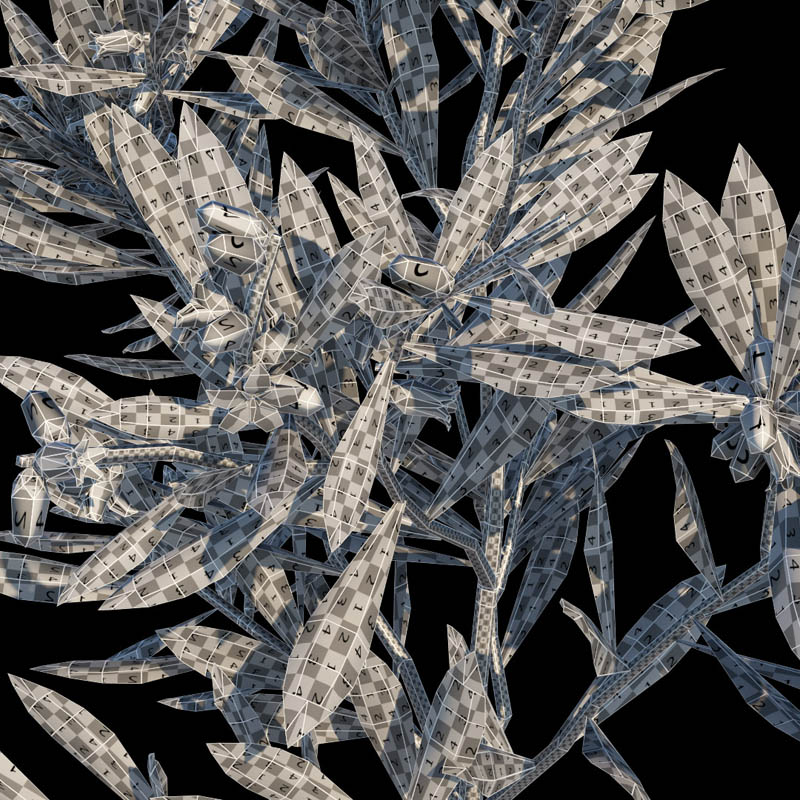 整个模型是一个几何。对于近景,可以使用Turbosmooth。叶子和花朵的比例已略有增加,以达到最佳效果和艺术效果。