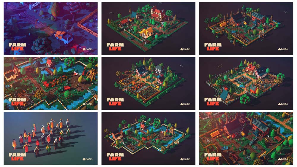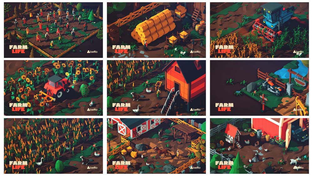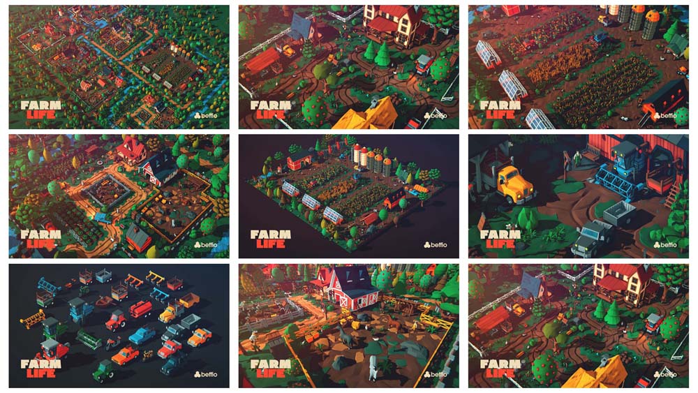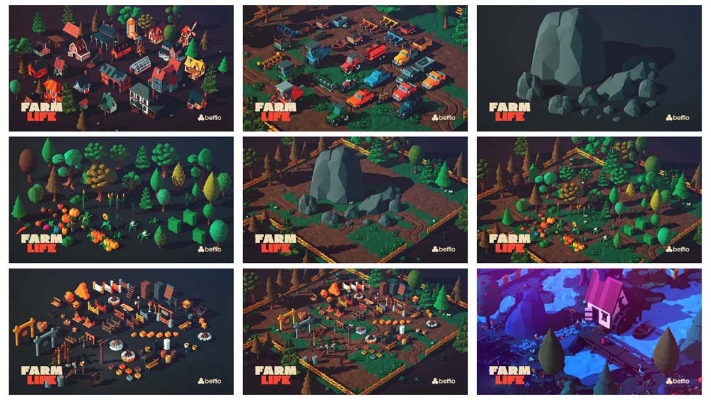 400+农场农夫和动物蔬菜低多边形FBX格式素材之家精选3D模型