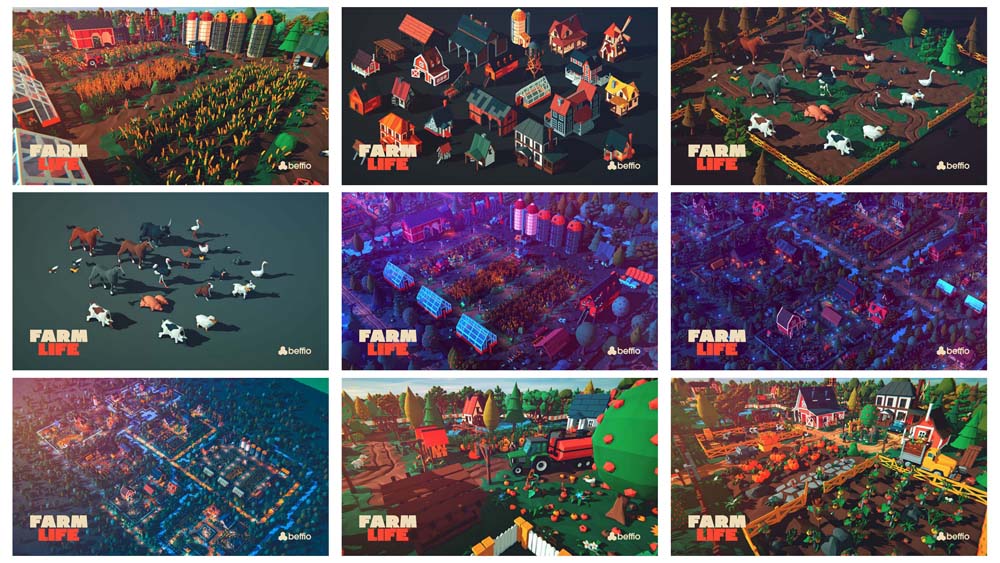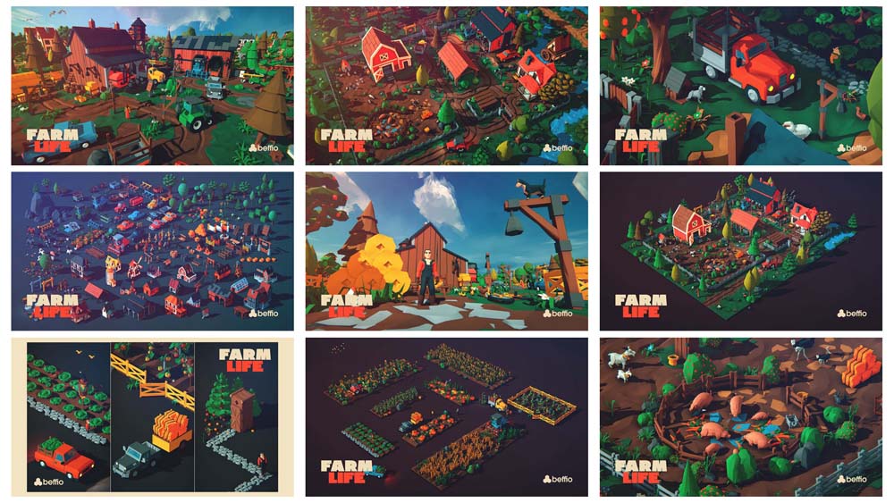 内容:模型和地图:▲FBX,UnityPackage模型包括(Obj和其他格式免费应要求提供)▲8个较小的地图,创建巨大的农场村,向您展示这些资产的潜力▲日光和夜光地图▲23动画动物每个动物有5个独特的环状动画呼吸,吃,闲置,奔跑,走路:公牛,猫,鸡,牛,狗,山羊,鹅,马,猪,鸵鸟,皮江,兔,乌鸦,绵羊,鹳与不同的变化▲26个动画角色,每个角色有4个独特的循环动画,呼吸,空闲,奔跑,走路:男孩,农民,男人,女孩,女人,不同的变化和肤色▲37建筑物包括:鸟屋,沼泽屋,喂食器,粮仓,绿屋,鸡舍,10农村不同的房子,邮箱,油泵,Privy,5棚,筒仓,稳定,仓库,浇水管,水塔,嗯,风车,木棚,不同的变化和颜色▲22作物包括苹果,甜菜根,甘蓝,胡萝卜,玉米,5种不同的海斯,韭菜,洋葱,辣椒,南瓜,向日葵,番茄,番茄科,小麦,小麦早午餐与不同的变化和颜色▲113模块网格地面包括:地面基础,路径,道路,石头,泥,水,河流,沙子,砾石,不同变化和颜色的炉渣的角落▲6种植物包括:鲜花和6种不同变化的草和颜色▲27个道具包括:袋子,2个桶,长凳,桶,营火,2个板条箱,2个馈线,6种类型的栅栏,叉子,门,对冲,梯子,灯,稻草人,标志,不同变化和颜色的凳子▲13种不同的岩石,变化和颜色▲29种树木和灌木,具有不同的变化和颜色▲16种车辆包括:3农业机械,手推车,自行车,自行车,电机,船,收割机,吉普车,皮卡,拖拉机,4辆拖车,带变化和颜色的卡车附加功能:▲1手绘Skybox▲Light Shaft插件即将作为独立资产包含在内用于对场景进行颜色分级▲Light Shaft Plugin▲Tree Swinger插件,使用拖放插件为多个树木和草地制作动画▲30示例场景▲15使用Unity3D时间线系统的相机动画使用拖放插件的草▲30示例场景▲15使用Unity3D时间轴系统的相机动画使用拖放插件的草▲30示例场景▲15使用Unity3D时间轴系统的相机动画