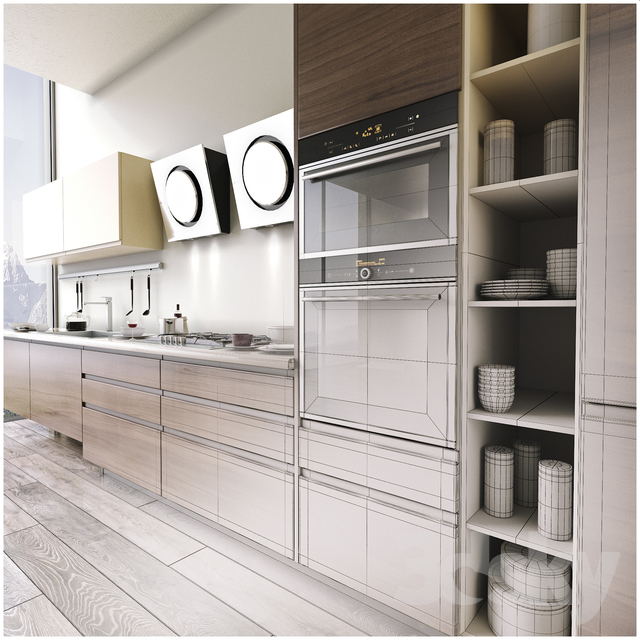 胡桃色橱柜背景厨房厨具素材之家精选3D模型