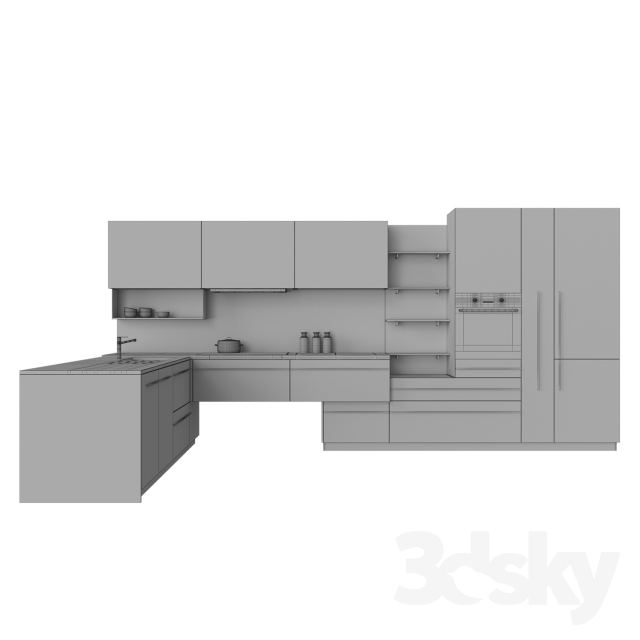 灰色背景的厨房和厨房用具素材之家精选3D模型