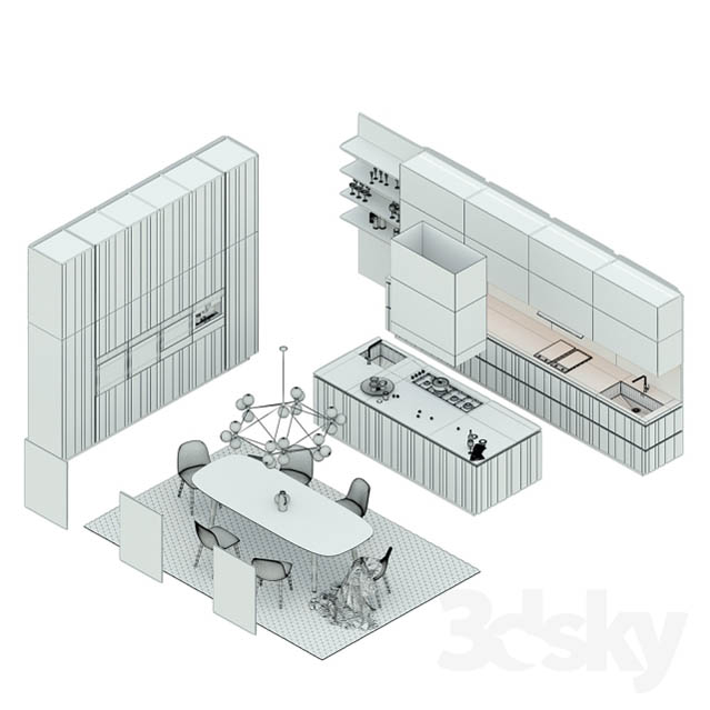 现代厨房场景和厨房用品素材之家精选3D模型