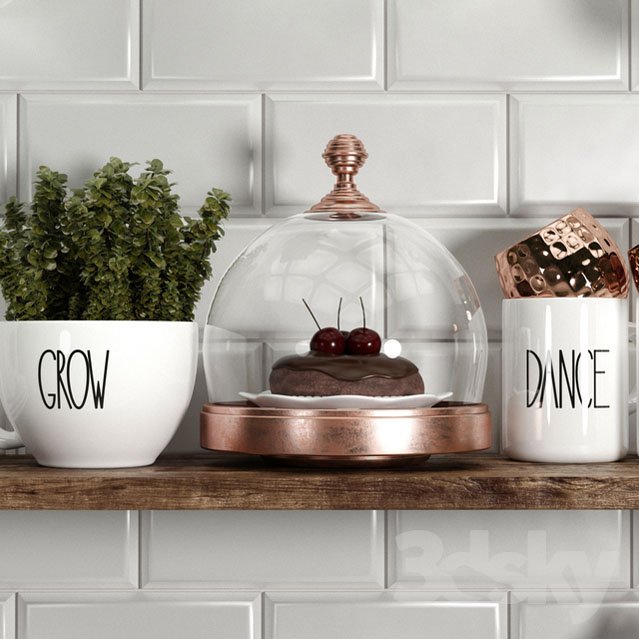 厨房装饰品盆栽和杯子碗具素材之家精选3D模型