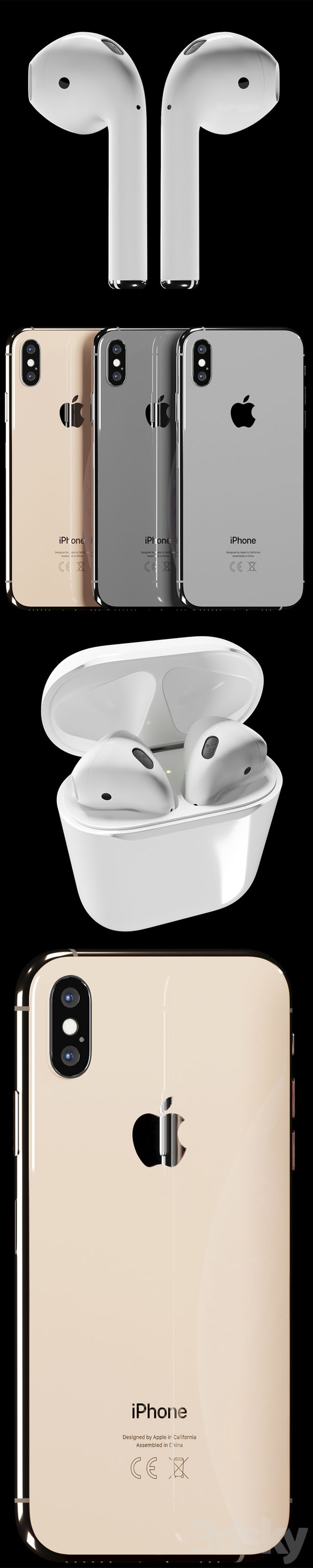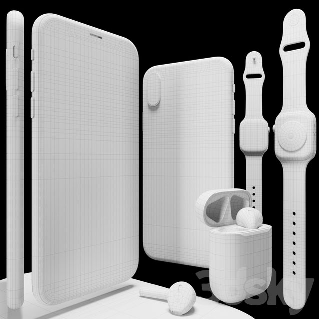 iPhone XS和Apple Watch 4 苹果无线蓝牙耳机手机素材之家精选3D模型
