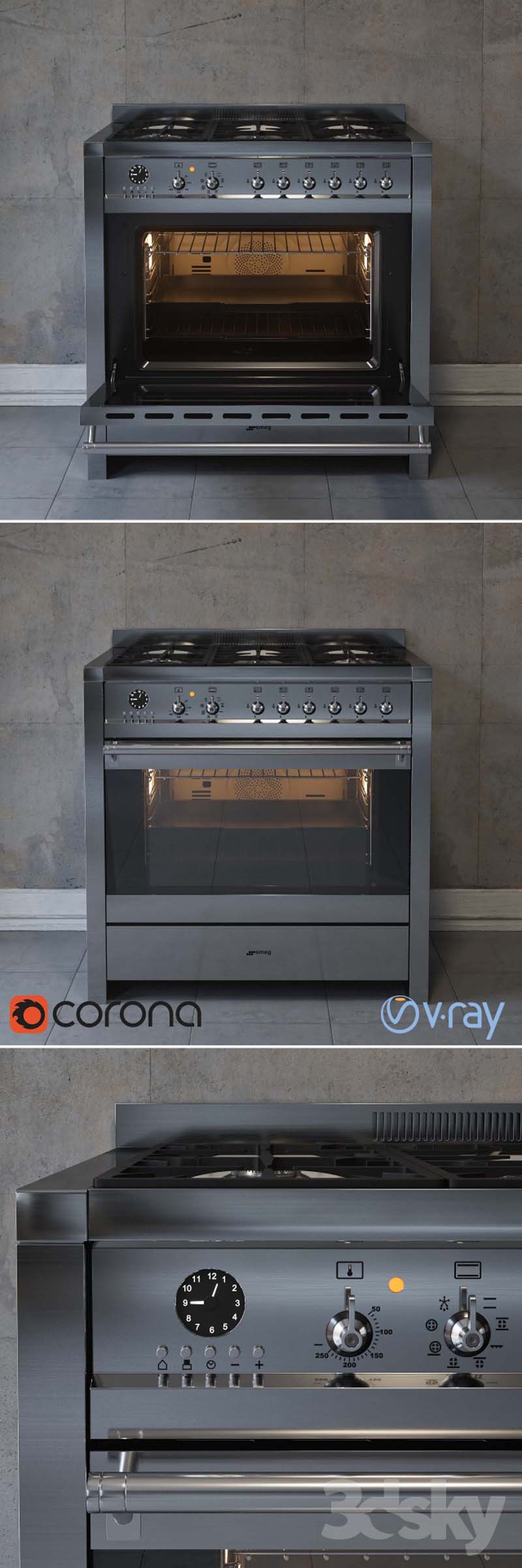 今天素材之家给大家分享的这款3D模型资源名称为:SMEG烹饪中心CS19A-7烤箱3D模型,内容与电器3D,家用电器3D,烹饪3D,烤箱3D,3DMAX,MAX,FBX,TEX相关,文件大小为54 MB,模型文件格式为未分类。
