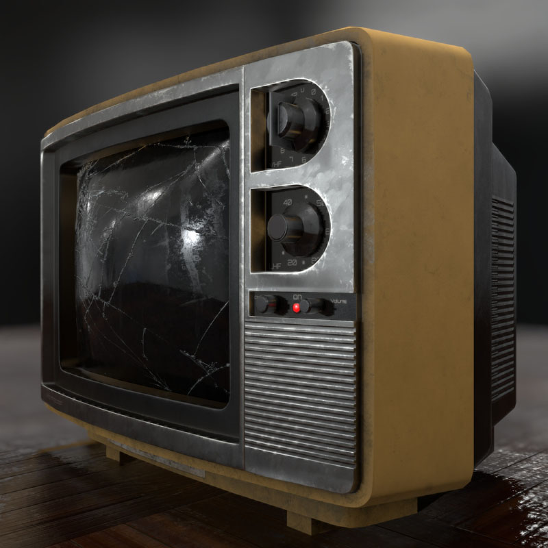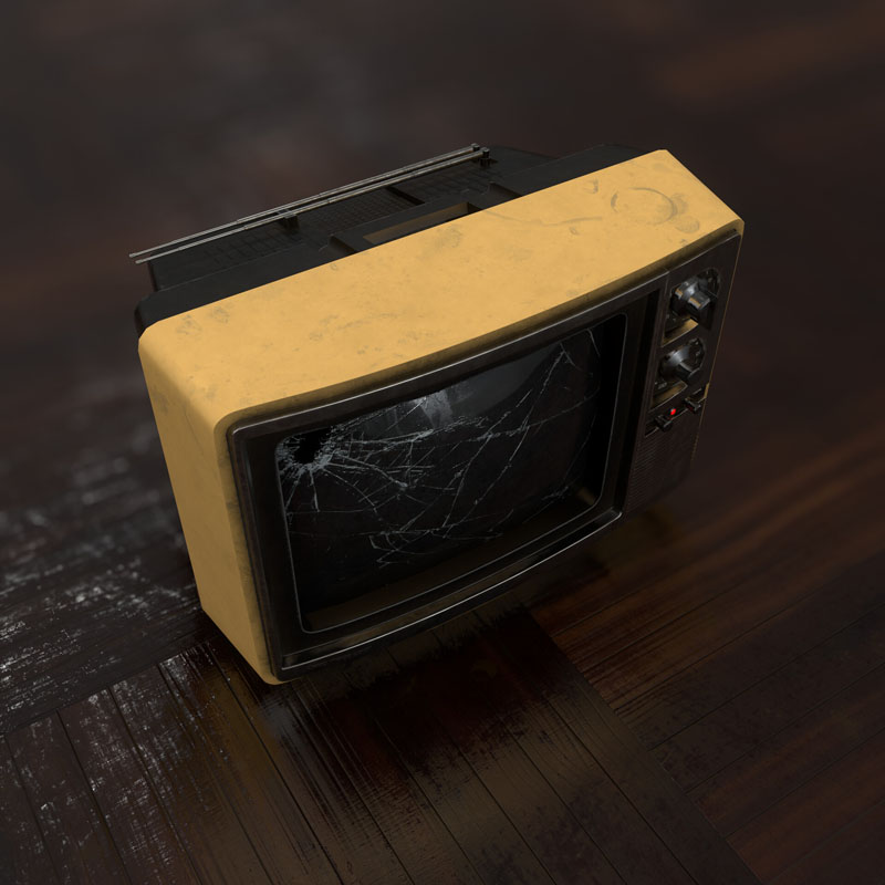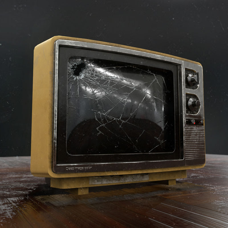 屏幕碎裂的老式电视机素材之家精选3D模型