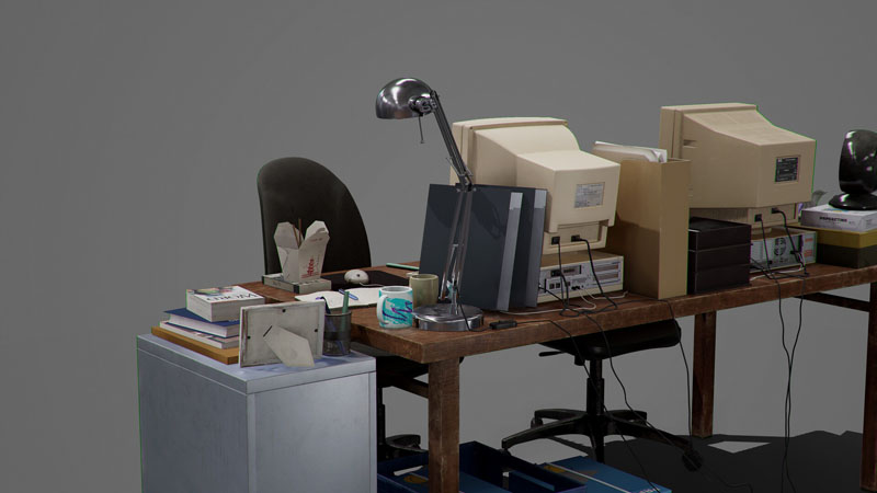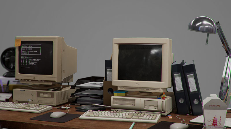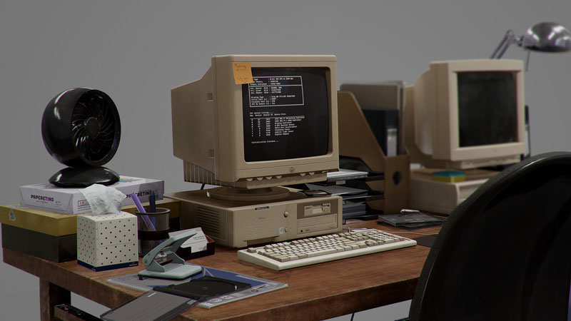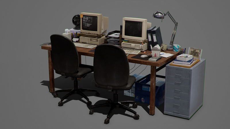 90年代复古工作办公场景电脑办公用品素材之家精选3D模型