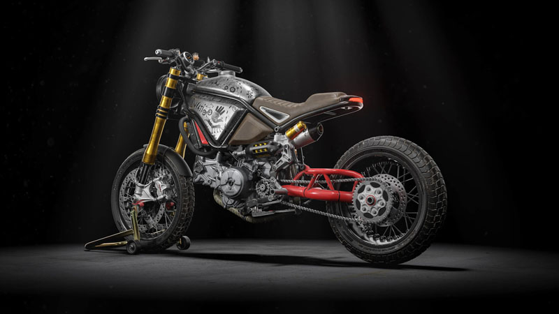 这辆车大致基于杜卡迪的 Panigale Superquadro 1199 发动机和底盘。其他零件自己设计的,要么是在早期的杜卡迪车型上找到的,比如 S2R 1000 Monster 的经典摇臂。