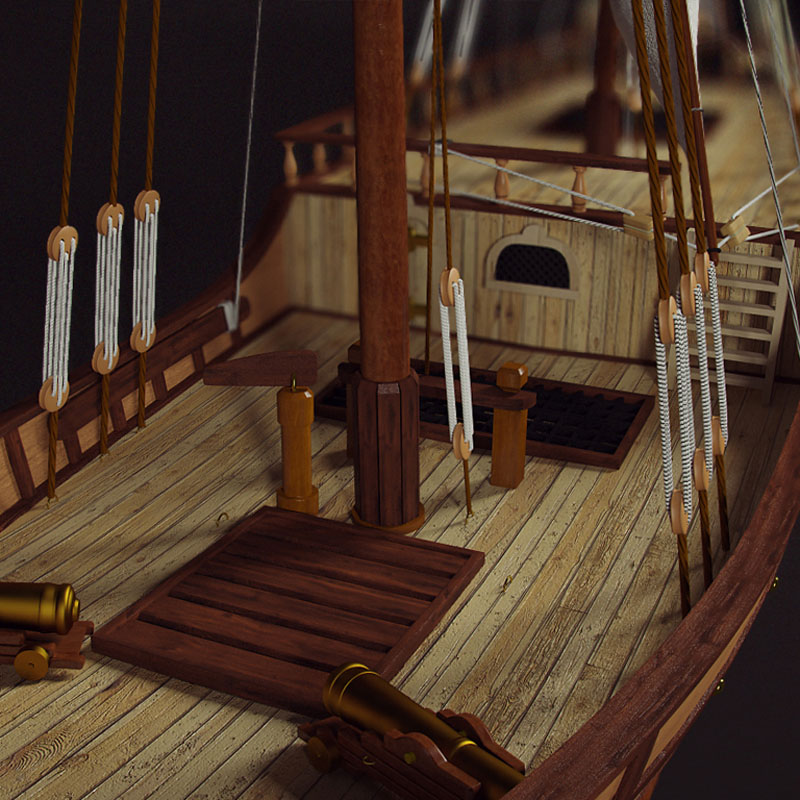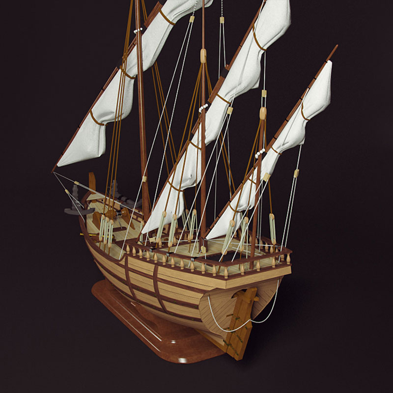 模型帆船(帆船)“ La Nina”。 按1:65比例绘制图纸Amati modelismo。 尺寸(HxWxD)厘米:重量41h10h26型号-670k Polycom