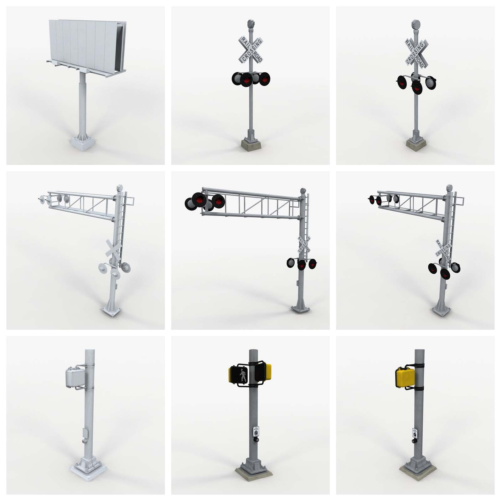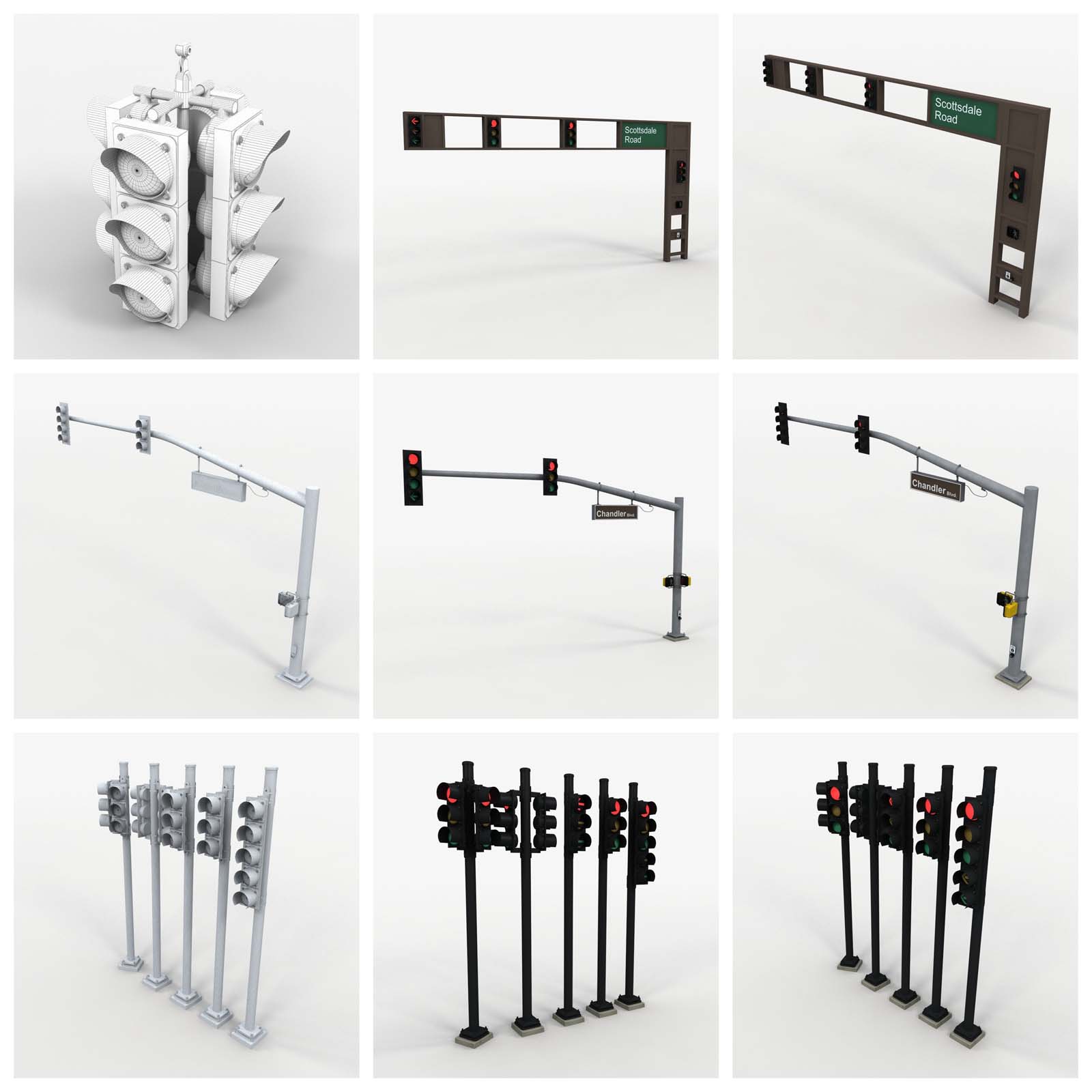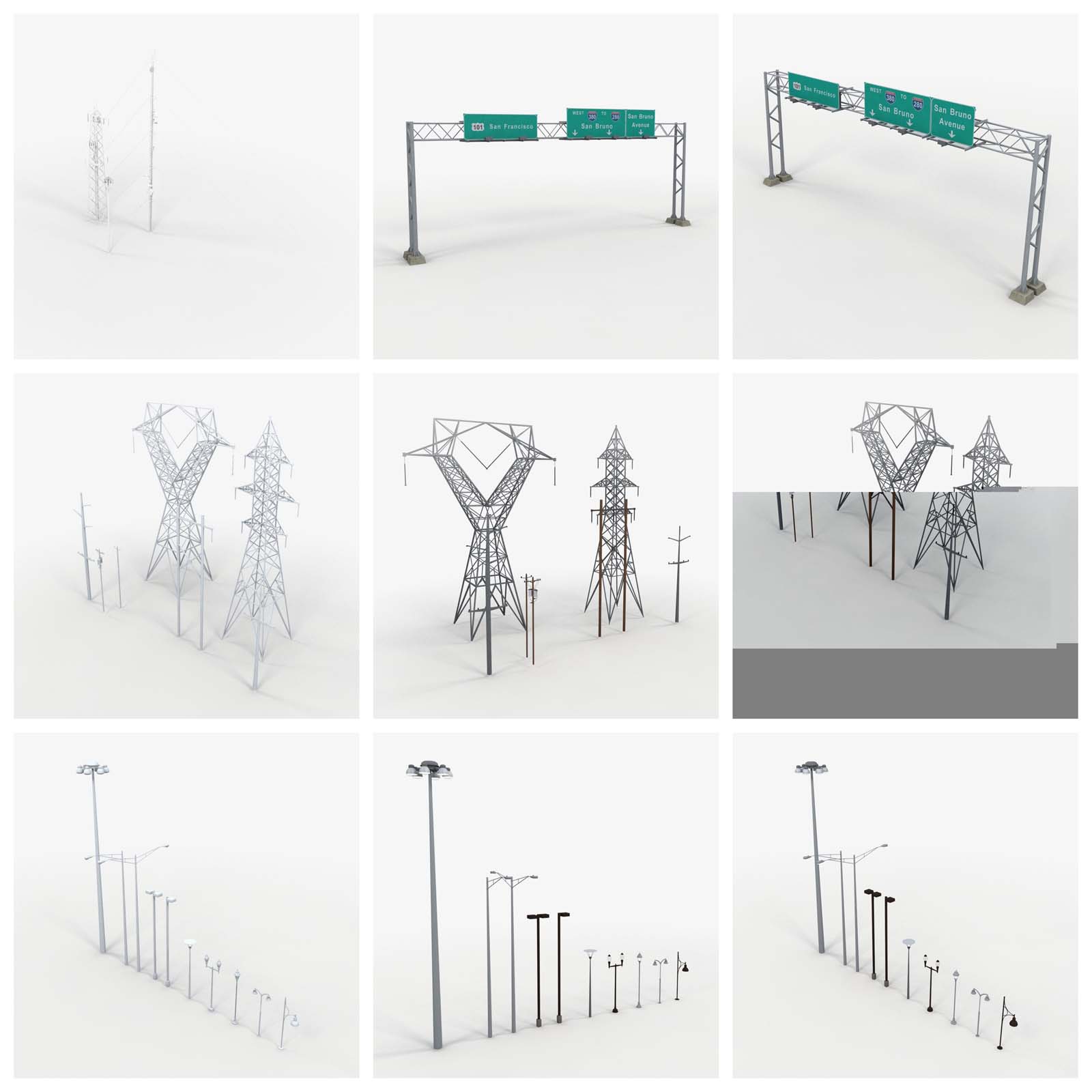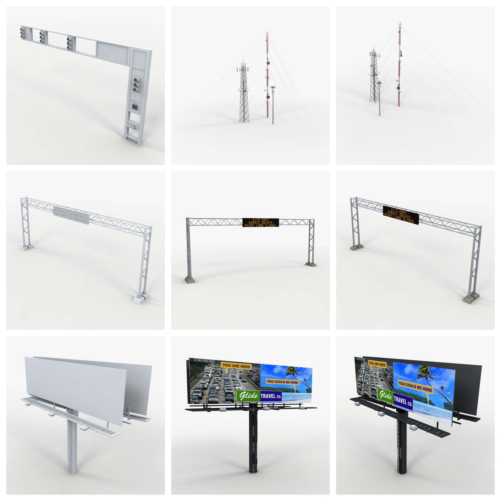 交通指示指挥工具,马路广告牌电线杆架子交通灯素材之家精选3D模型
