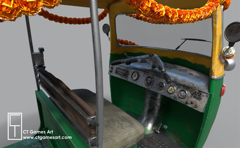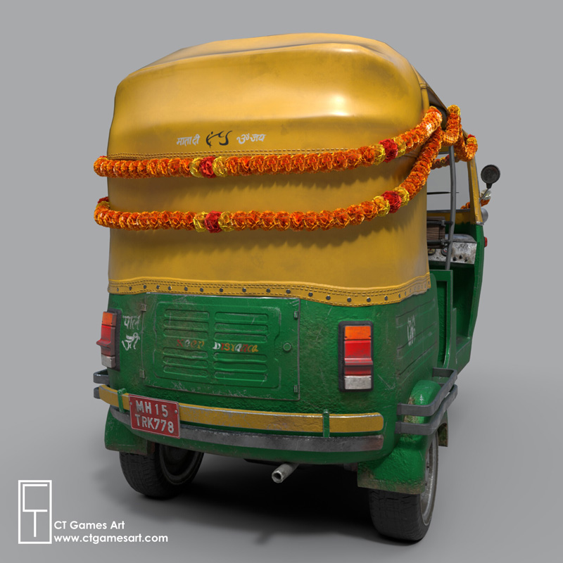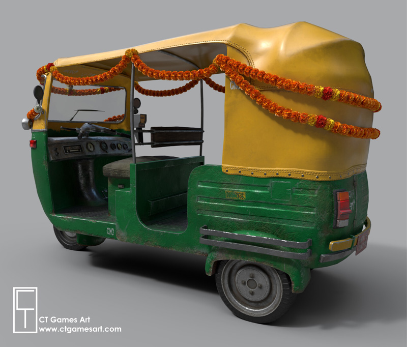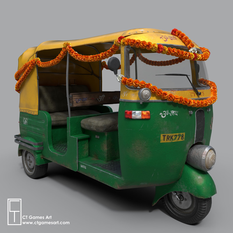 这是创建的Tuk Tuk,是通过结合各种原始材料来获得更通用的设计的,而不是完全复制真实世界的模型。 我试图坚持一种美学,这种美学在印度比较普遍,因此已经对模型进行了装饰。 用于创建此模型的软件是Maya 2018,zBrush,Substance Painter和Photoshop。