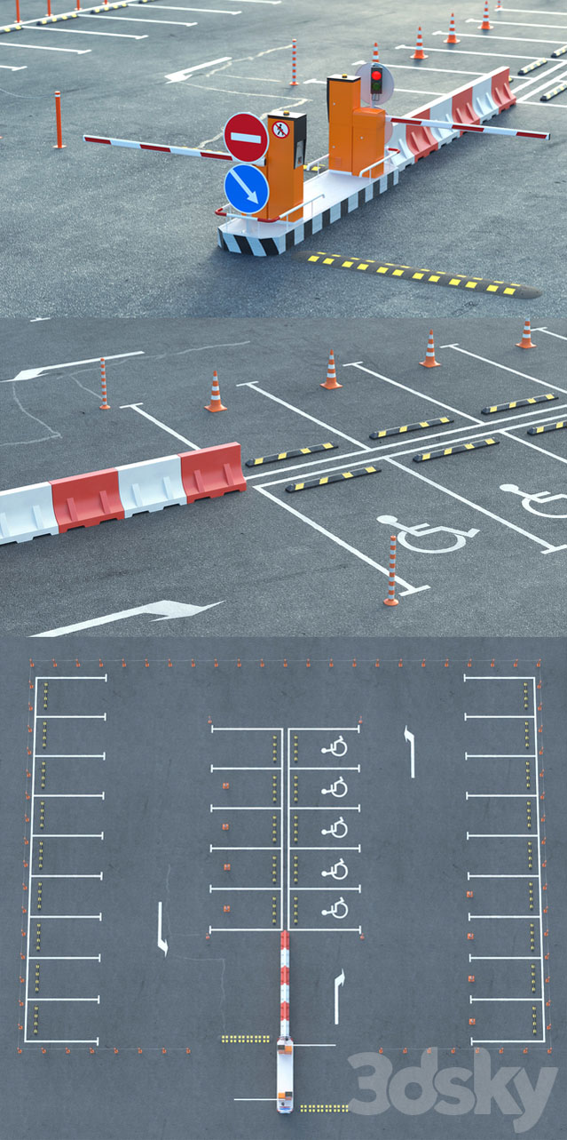 停车场升降起落杆,减速带交通指示牌圆锥等素材之家精选3D模型