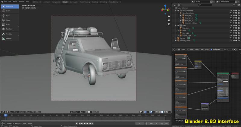 - Blender 2.83 版本使用循环材质类型(原理着色器)。