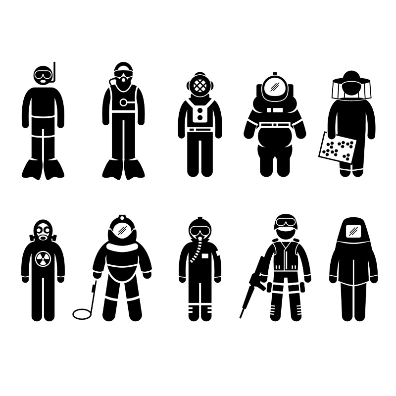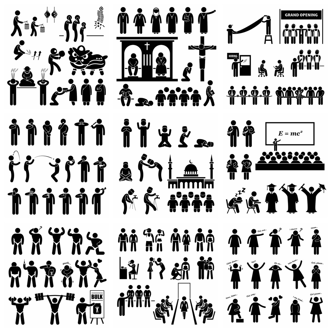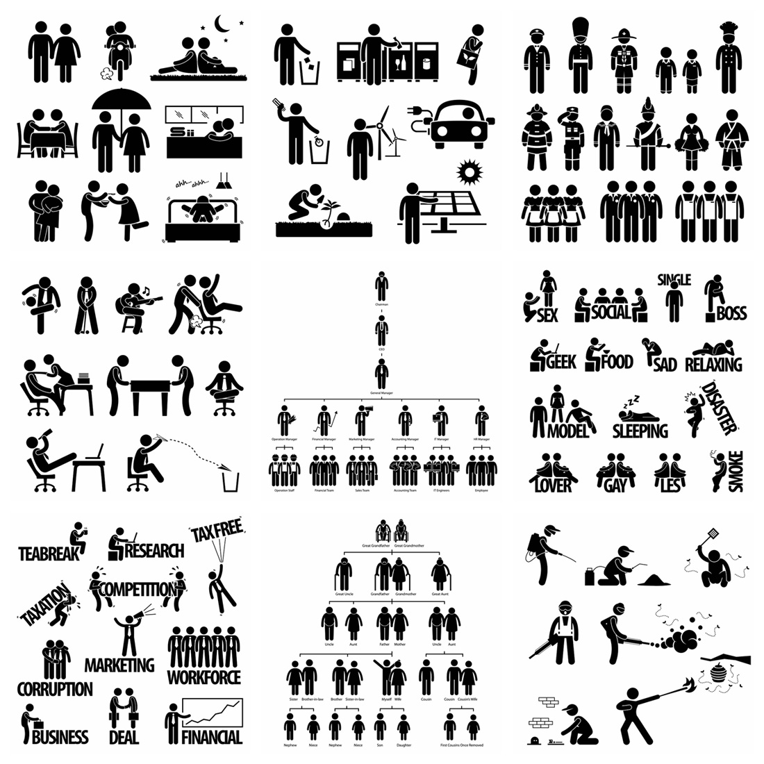 物流运输人物蛙人潜水员人物团结捕鱼卫生打扫清洁体育运动跳绳举重学习会议等矢量人物剪影