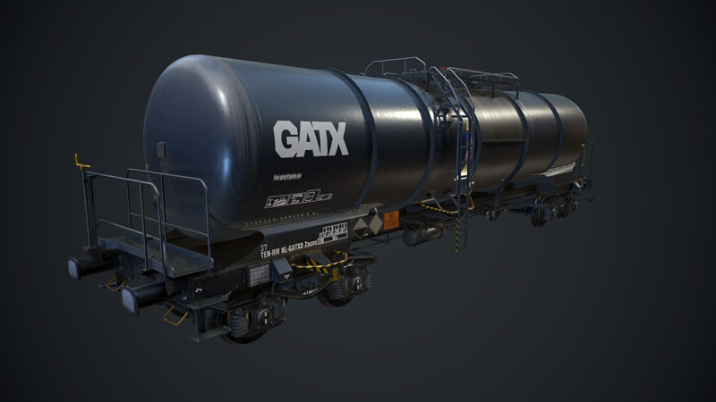 GATX ZACNS Oil anf fuel tanker I created on behalf of Skyhook Games / Dovetail Games for the ever popular Train Sim World game.