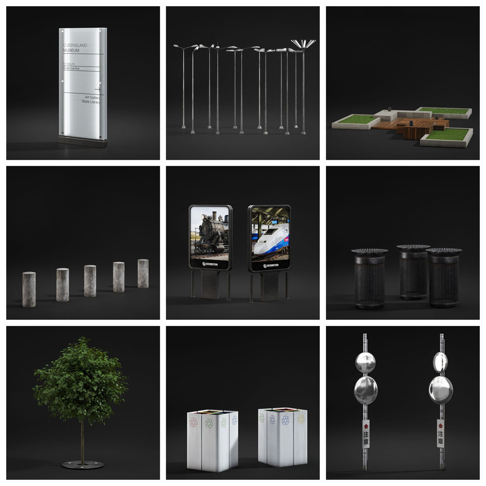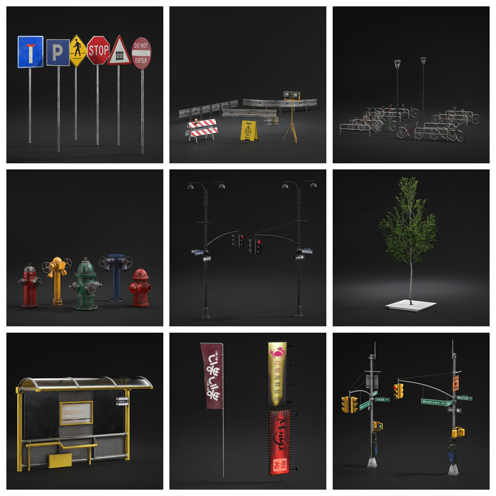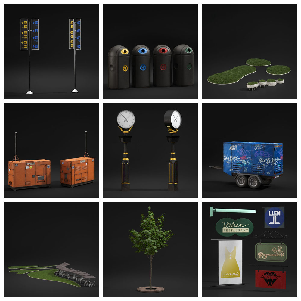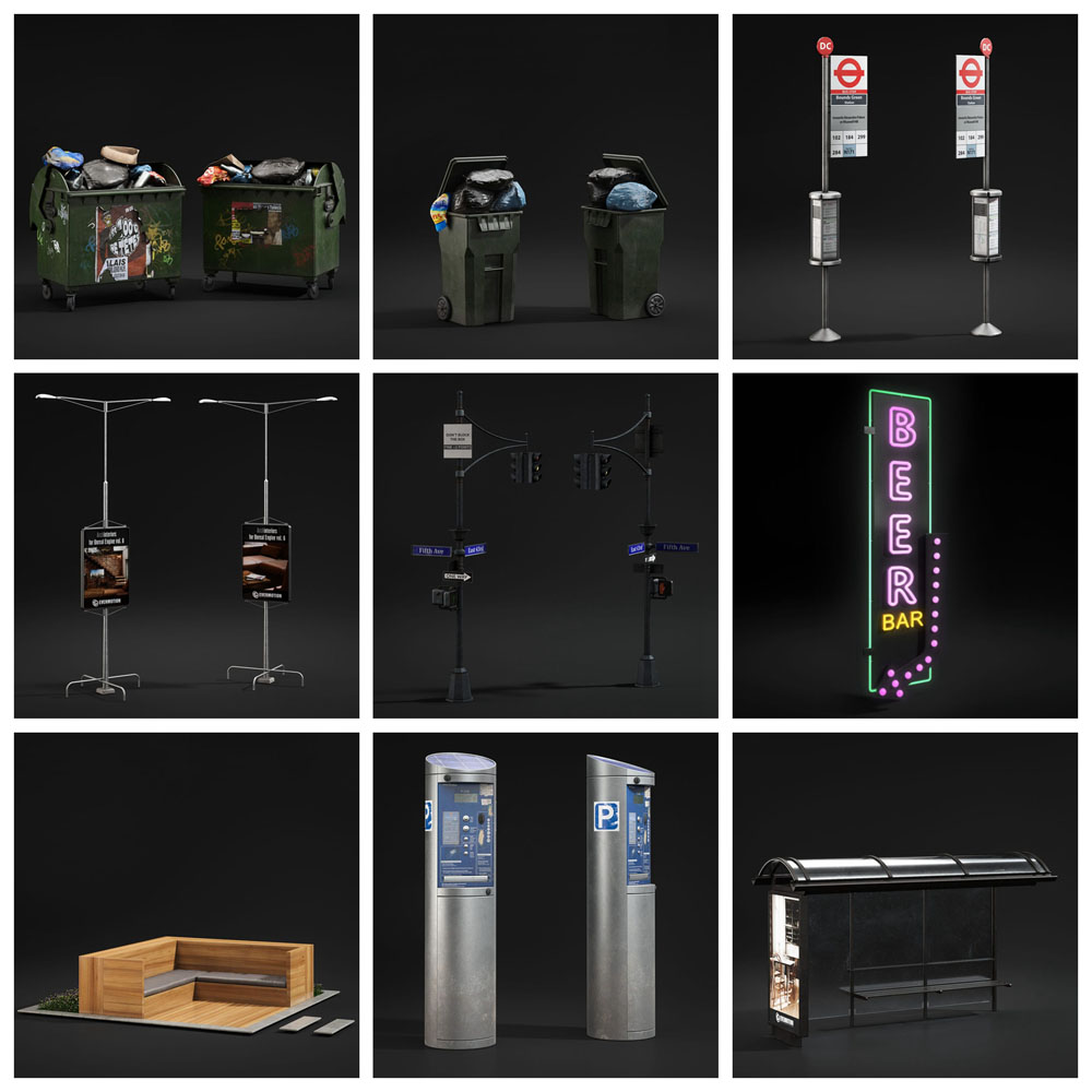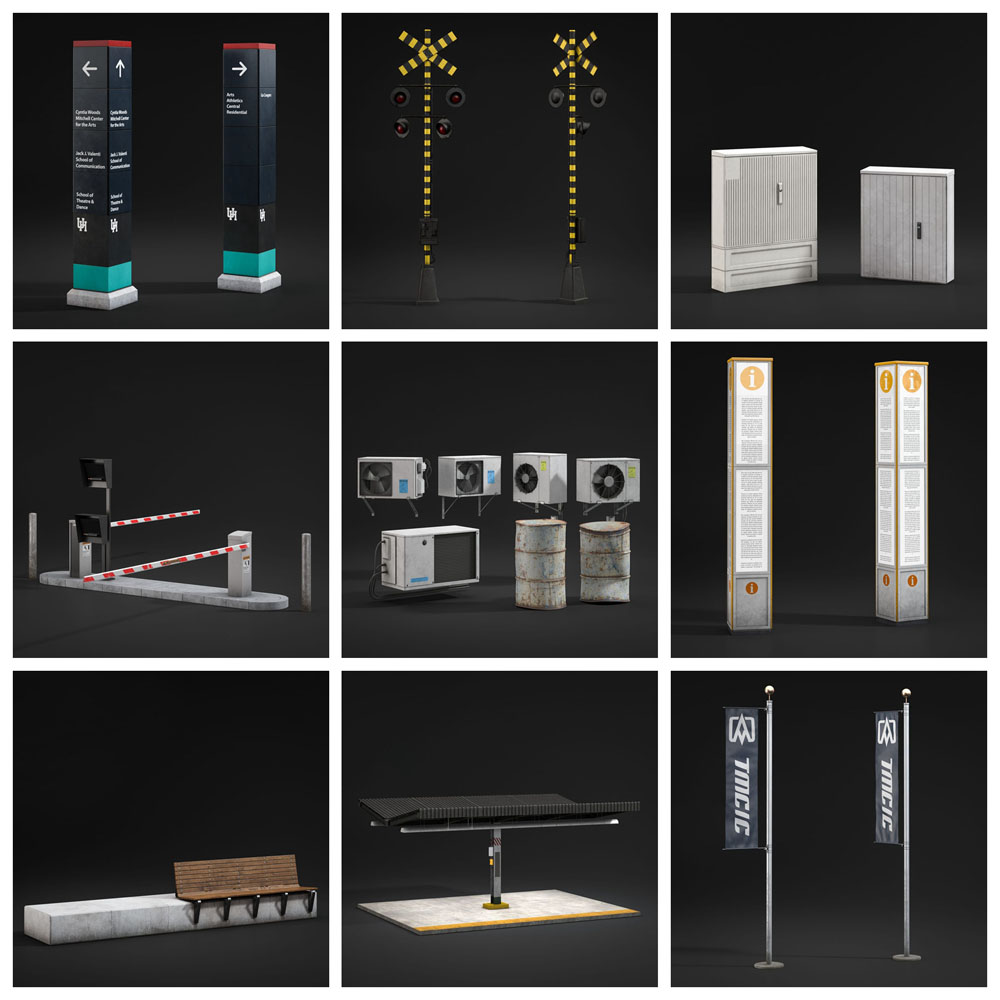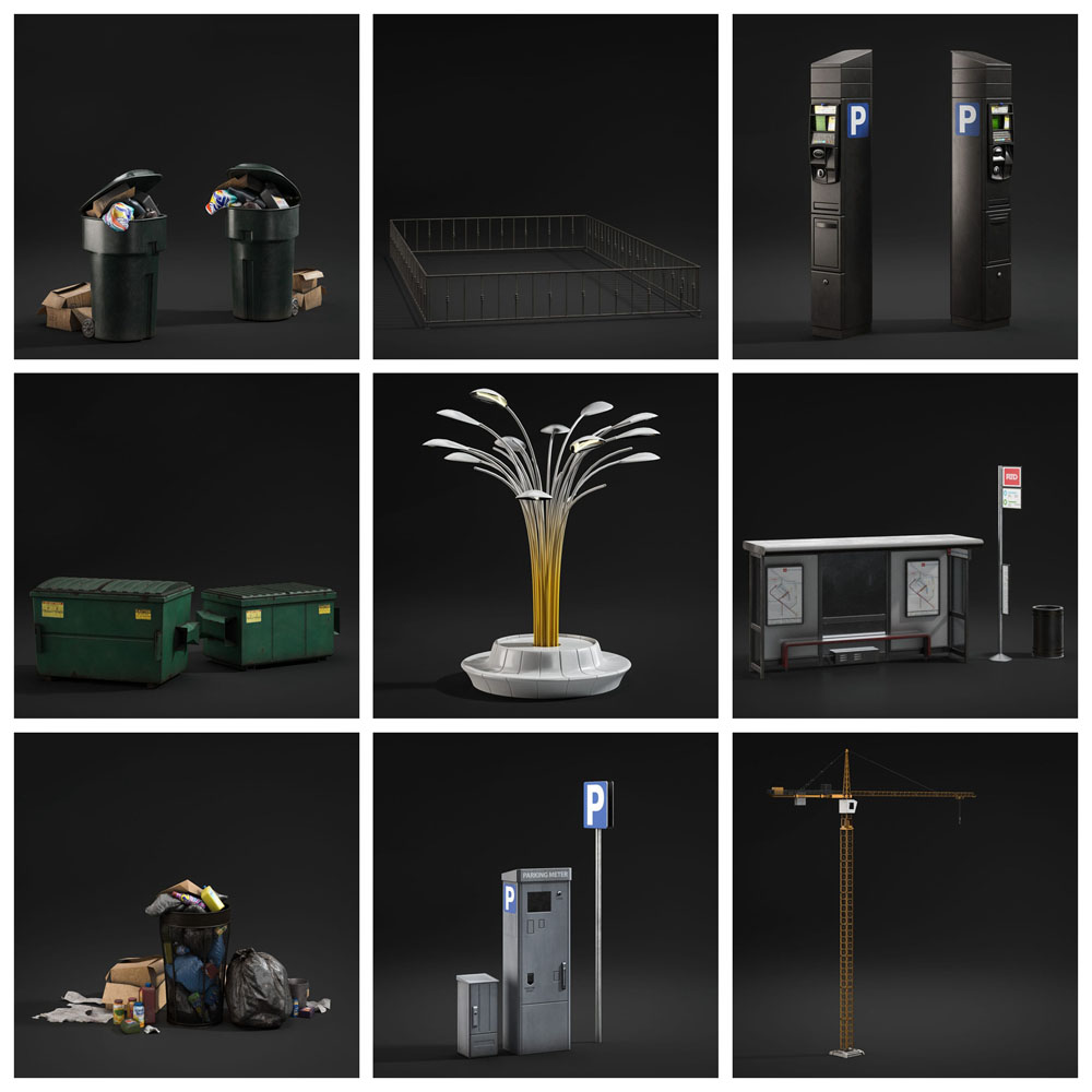 建筑模型卷 211包括用于建筑可视化的72个专业,高度详细的3d模型。该收藏品附带街头道具的高品质3D模型。包括纹理和材料。所有对象都可以在可视化中使用。