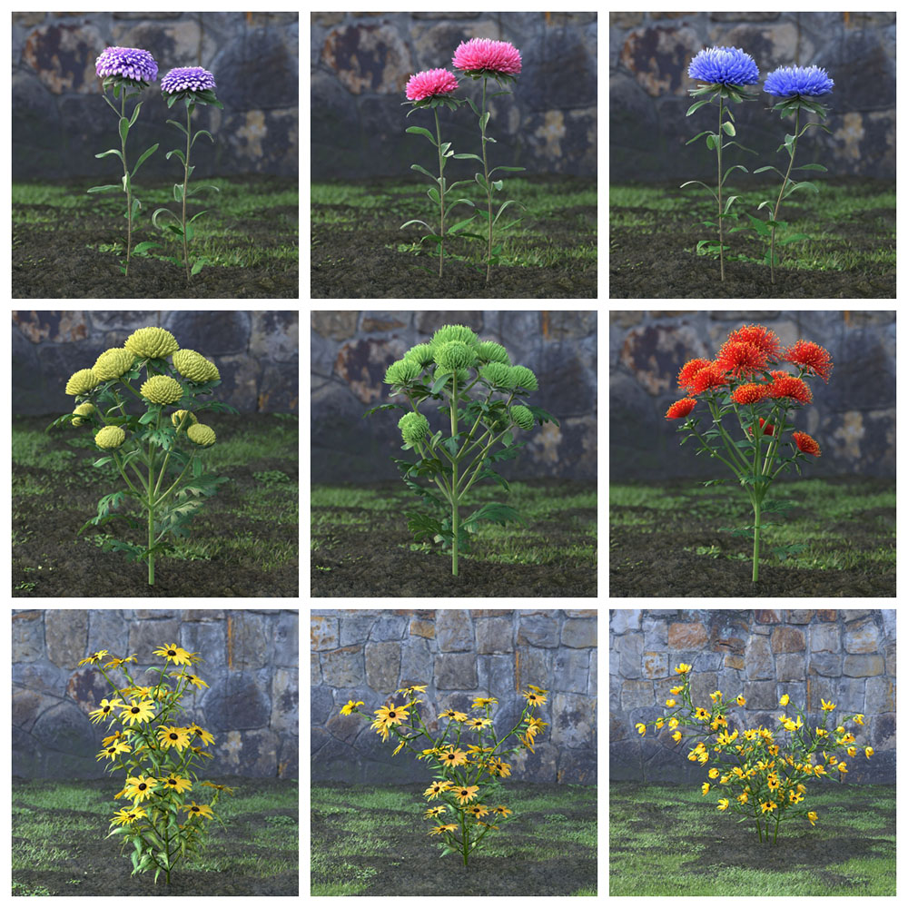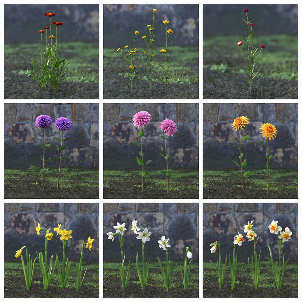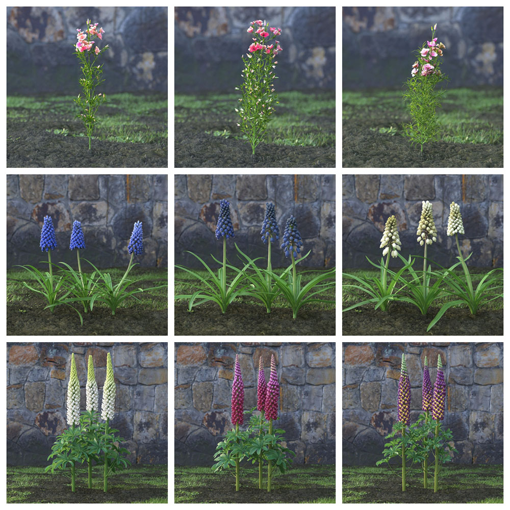 Archmodels 卷。 214 包括 60 个用于建筑可视化的专业、高度详细的 3d 模型。 该系列包含 60 种具有所有纹理和材料的高品质花园花卉模型。 所有对象都可以在您的可视化中使用。