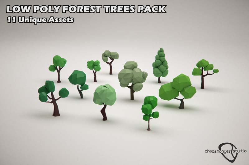 低多边形森林树木素材包VR / AR /低多边形素材之家精选3D模型