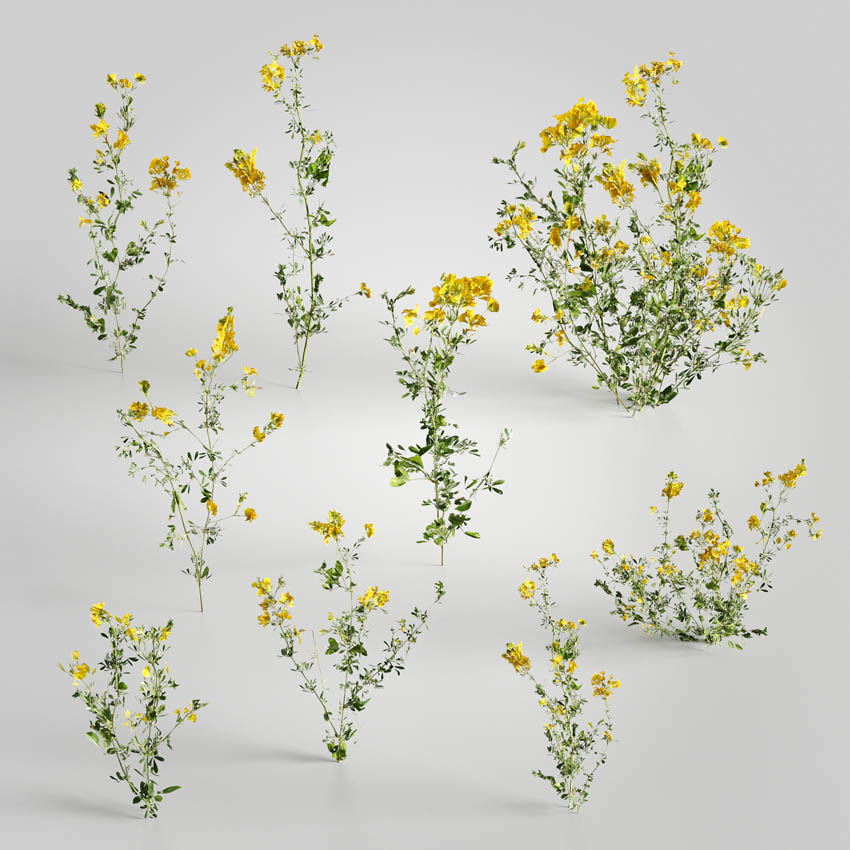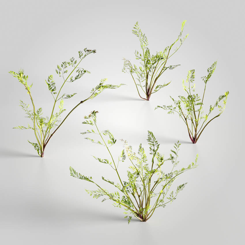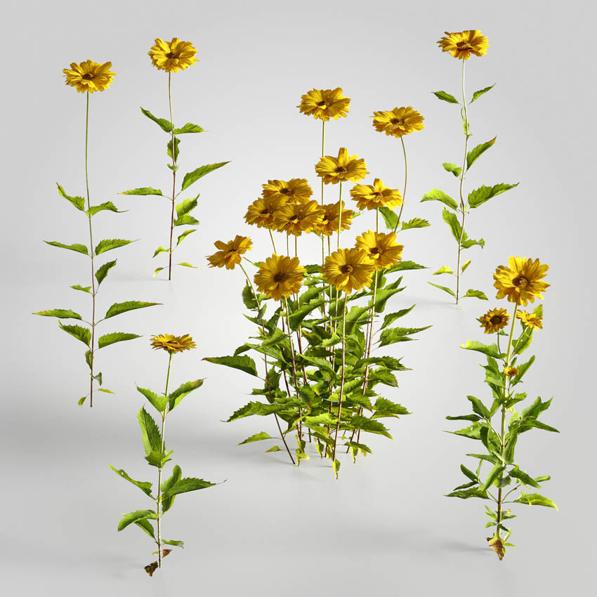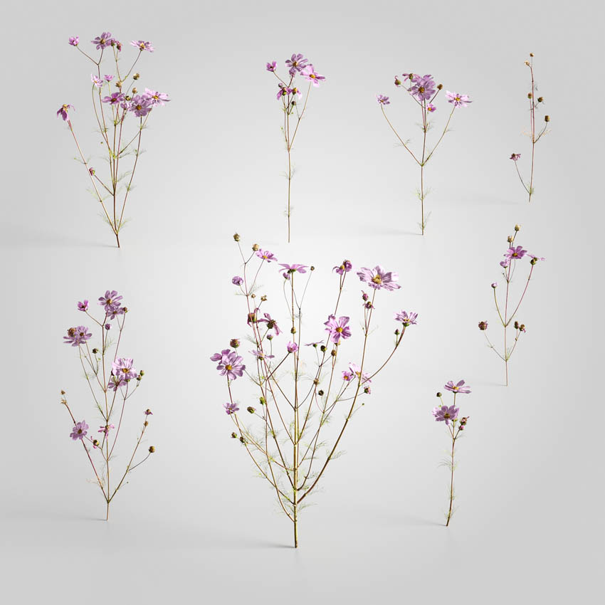 15套用于建筑可视化的3D模型。 该系列附带带有3d扫描纹理的低多边形植物模型(有效期为2000 tris)。 每组包括至少3种不同的植物变体。 您会在这里找到小的草地和花卉物种-chill,金钟,莲花,枸杞,波斯菊,紫苑,灯盏草,科尼萨,蒿,菊,杜鹃花。 所有对象都可以在可视化中使用。 集包括80个单独的模型。