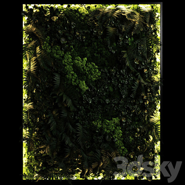 带LED背光的Phytowall。成分:苔藓,蕨类,peperomia。
