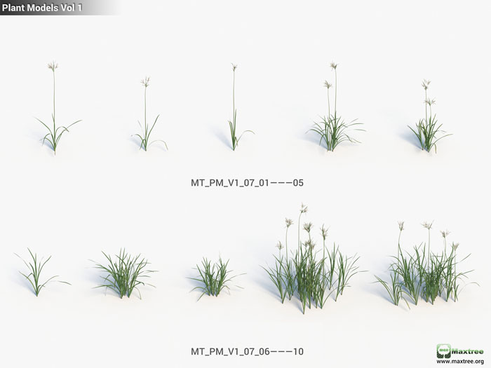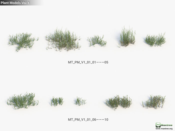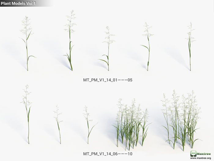Plant Models Vol 1是高质量3D草模型的集合。包括20种,共200个模型。
