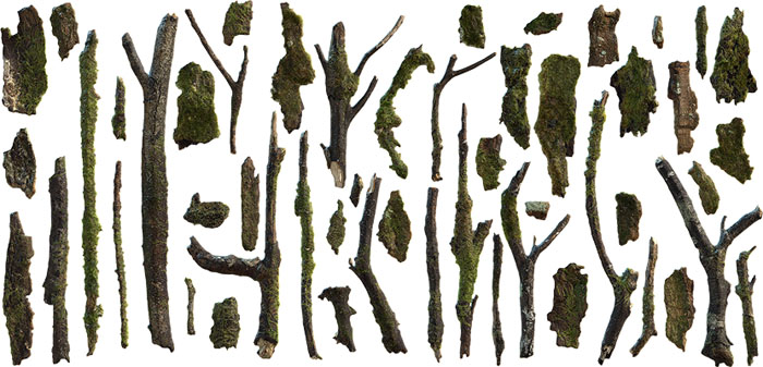利用数百种经过扫描的标本整理成60多种素材,包括苔藓,碎片,岩石,树叶,树枝,树桩和蘑菇,以增强您的森林景观。