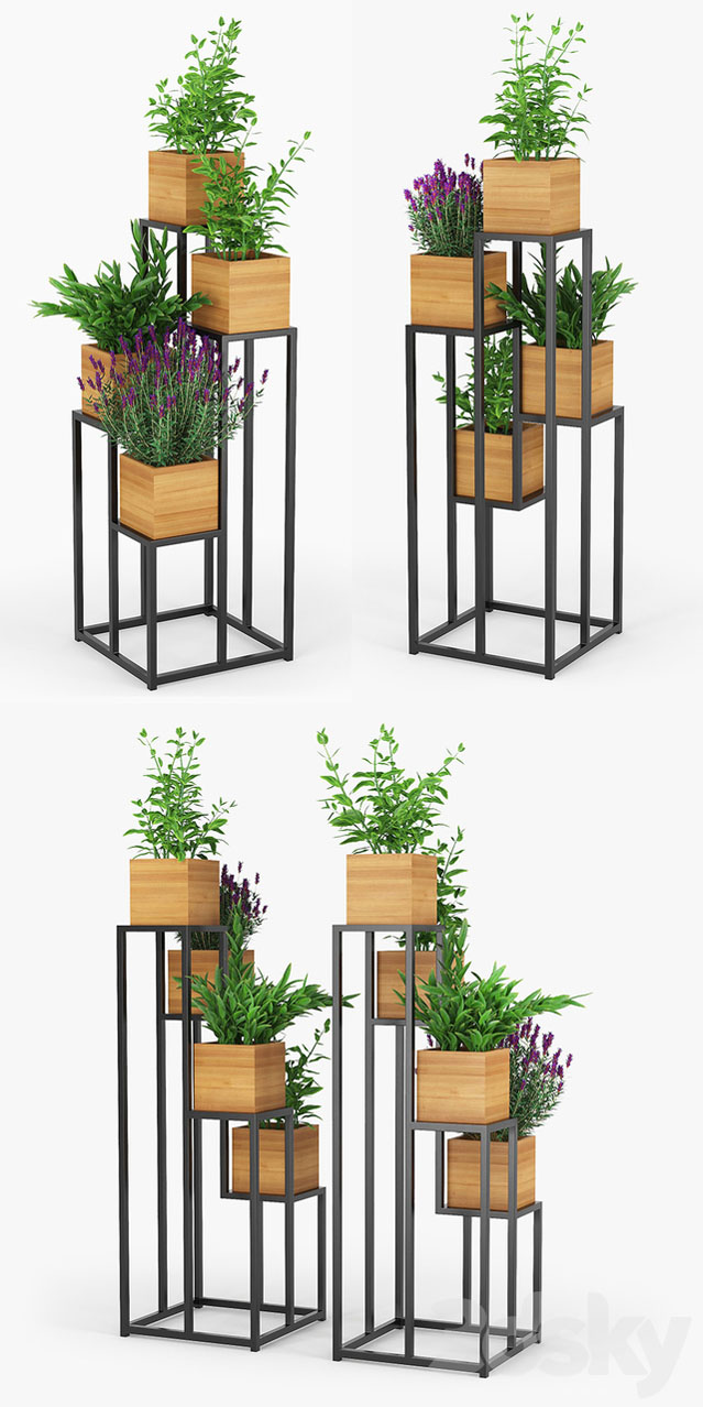 金属花架和方形花盆花卉盆栽素材之家精选3D模型