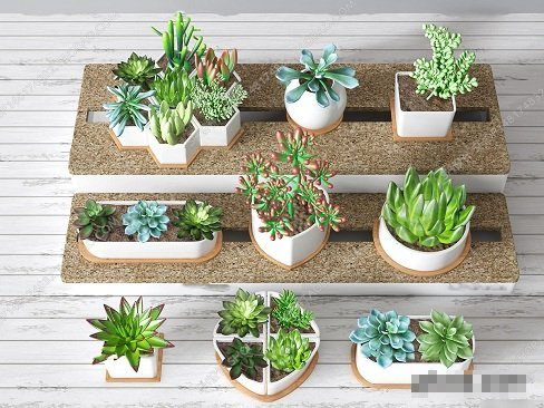 栽在花盆里的多肉绿色植物素材之家精选3D模型