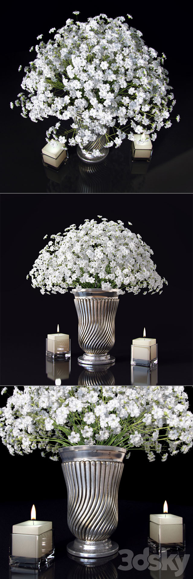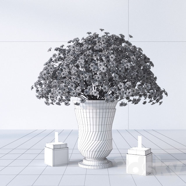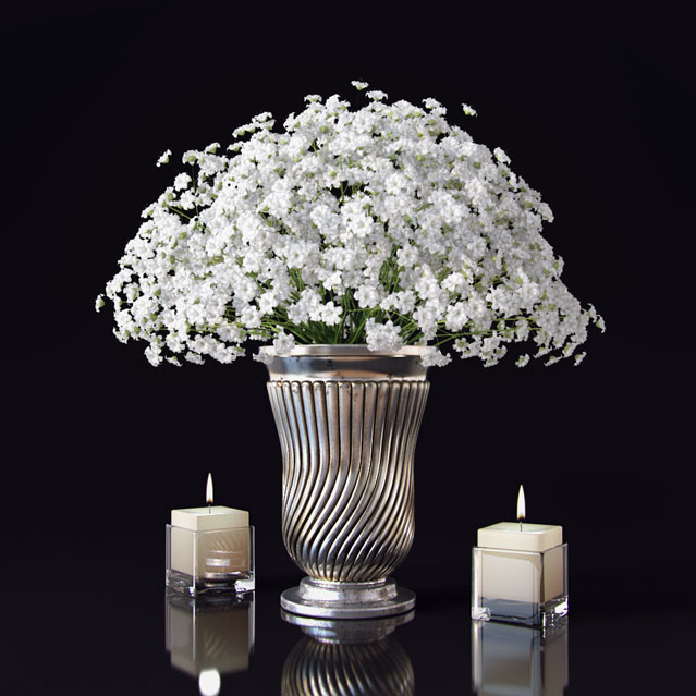 金属花瓶中的满天星花束花卉素材之家精选3D模型